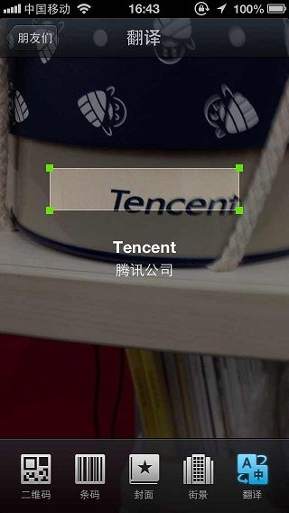 翻译扫描功能来自于腾讯另一个创新产品SOSO慧眼,目前功能还相对简单,只实现了使用频率最高的英译中。