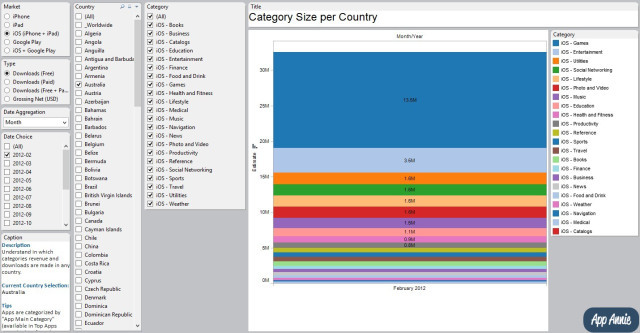 据悉,在目前营收排名前 100 位的 iOS 发行商中,90% 以上已经在使用 App Annie 的数据与产品。超过300,000 款应用软件每日通过 App Annie Analytics 追踪下载次数、营收、排名和评论。截至2013 年 8 月,已追踪超过 250 亿次下载,应用软件营收已超过 60 亿美元。App Annie 现有团队在 110 人左右,在旧金山、北京、香港、伦敦、首尔和东京设有办事处。