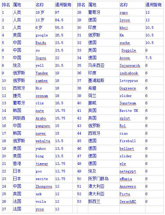 直到2014年年初有了突破,这才有了对世界50个搜索引擎进行的智商测试并作出的排名。